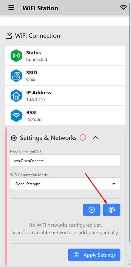 После включения, Open Connect открывает собственную точку доступа/ Подключаемся к ней.